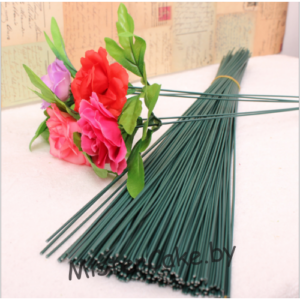 Проволока обёрнута бумагой, что предотвращает её окисление при контакте с пищевыми продуктами и соскальзывание цветов. Она великолепно гнётся, таким образом давая возможность придавать стеблю нужный изгиб.
