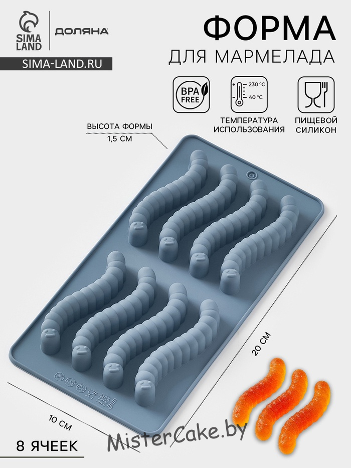 Форма для мармелада Доляна «Червячки», 20×10×1.5 см, силикон