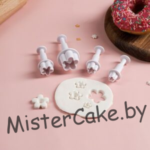 Плунжер — это та же вырубка, но с выталкивателем. Плунжера, так же, как и вырубки, изготавливаются из прочного пищевого пластика. Плунжер состоит из непосредственно вырубки и ручки с выталкивателем, при помощи которого Вы легко сможете вытащить готовую форму. Данный кондитерский инструмент позволит Вам ещё в большей степени наслаждаться работой с мастикой и марципаном, делая её менее трудоёмкой и более приятной и творческой. Рекомендуем заказывать сразу несколько плунжеров разного размера. Это позволит Вам создавать объёмные фигурки. Используя плунжер, можно также украшать боковые части тортов узорами. Для этого просто не дожимайте выталкиватель плунжера до конца.