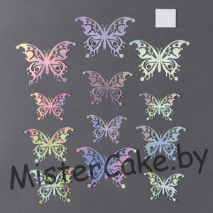 Набор для украшения «Бабочки», набор 12 шт, цвет голография серебро