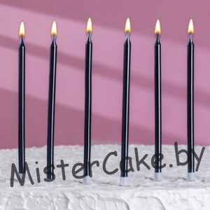 Свечи в торт «Ройс», 6 шт, высокие, 12,5 см, графит металлик