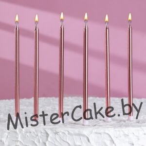 Свечи в торт «Ройс», 6 шт, высокие, 12,5 см, розовый металлик