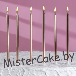 Свечи в торт «Ройс», 6 шт, высокие, 12,5 см, шампань металлик