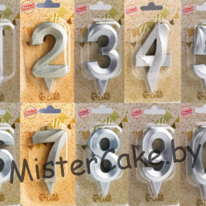 Свеча в торт «Грань» в ассортименте, серебряный металлик