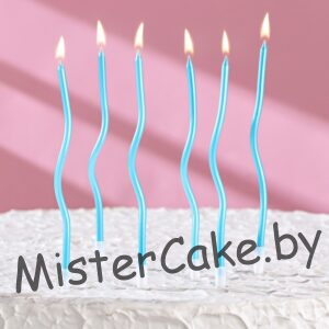 Свечи для торта витые «Серпантин» 6 шт, коктейльные, небесно-голубые
