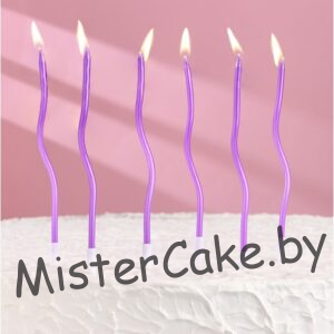 Свечи для торта витые «Серпантин» 6 шт, коктейльные, фиолетовые
