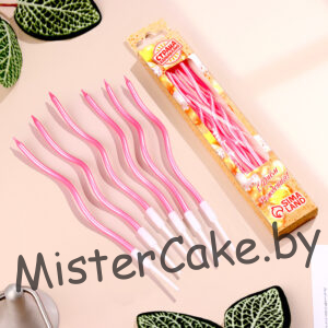 Свечи для торта витые «Серпантин» 6 шт, коктейльные, розовый блик