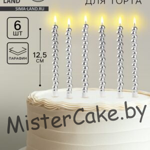 Свечи для торта «Жемчужины», 6 шт., серебряные