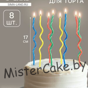 Свечи в торт коктейльные витые «С днем рождения», 6 шт, 16,5 см, разноцветные