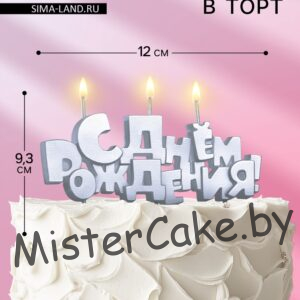Свечи для торта на шпажках «С Днем рождения», 5.3 см, серебро
