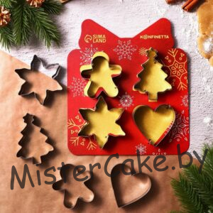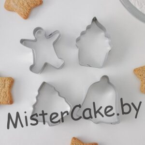 Набор форм для вырезания печенья Доляна «Человечек, капкейк, колокольчик, ёлочка», 4 шт