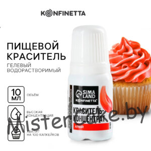 Краситель-концентрат пищевой гелевый водорастворимый KONFINETTA: алый,10 мл.
