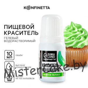 Краситель-концентрат пищевой гелевый водорастворимый KONFINETTA: зеленое яблоко,10 мл.