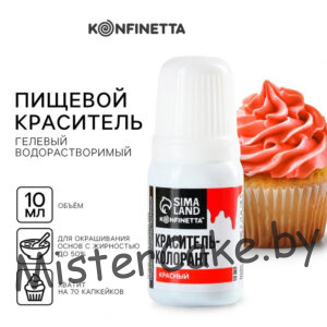 Краситель пищевой гелевый водорастворимый KONFINETTA: красный,10 мл.