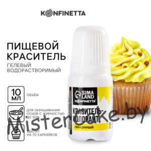 Краситель пищевой гелевый водорастворимый KONFINETTA: лимонный,10 мл.