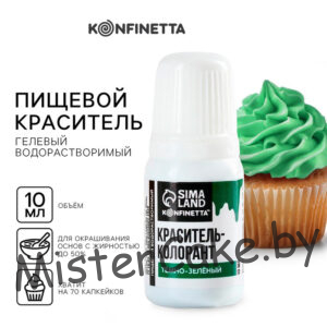 Краситель пищевой гелевый водорастворимый KONFINETTA: темно-зеленый,10 мл.