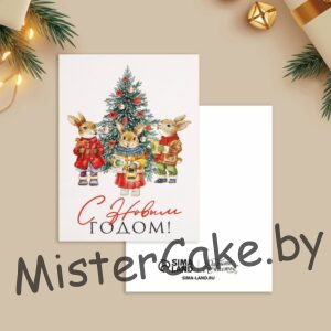 Открытка-мини «С Новым годом!», зайцы у ёлки, 6 × 8 см