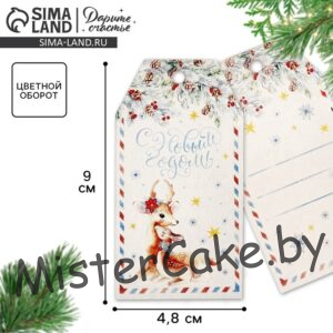 Шильдик на подарок Новый год «Оленята» 4.5×9.0 см