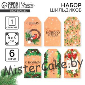 Набор из 6 шильдиков на новогодние подарки «Счастья», 16 х 24 см, 6 шт.