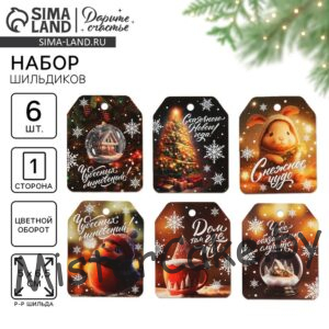 Шильдик новогодний декоративный в наборе «Время чудес», 6 шт., 9×5 см