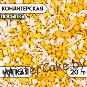 Новогодняя посыпка кондитерская с мягким центром «Жемуг»: золотая, белая, 20 г