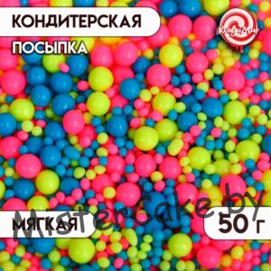 Новогодняя посыпка кондитерская с мягким центром «Неон» синий, лимонный, розовый, 50 г