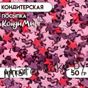 Новогодняя посыпка кондитерская Звездочки (красные, розовые, фиолетовые), 50 г