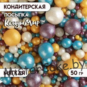Новогодняя посыпка кондитерская с мягким центром «Жемчуг»: золотая, голубая, сиреневая, серебро, 50 г