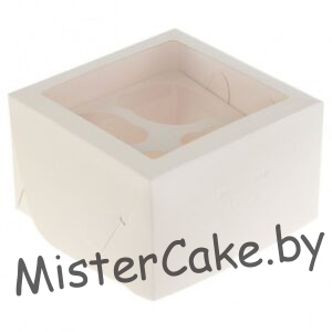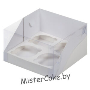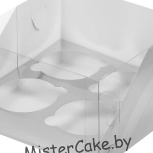 Упаковка на 4 капкейка с пластиковой крышкой 16*16*10см белая