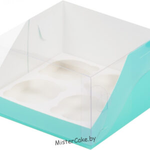 Коробка на 4 капкейка с пластиковой крышкой 16*16*10см Тиффани