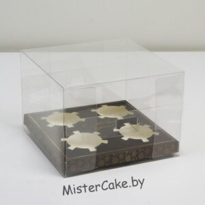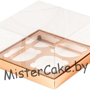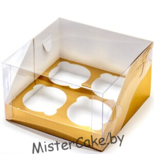 Коробка на 4 капкейка с пластиковой крышкой золото