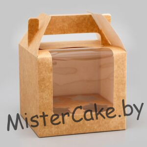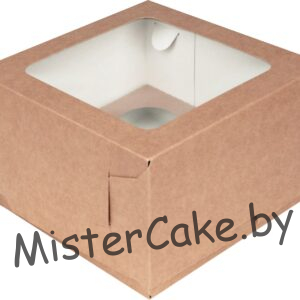 Коробка для 4 капкейков, крафт 16 х 16 х 14 см