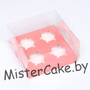 Коробка на 4 капкейка, розовый, 18.5 × 18 × 10 см