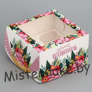 Коробка складная на 4 капкейков с окном «лучший воспитатель» 16*16*10 см