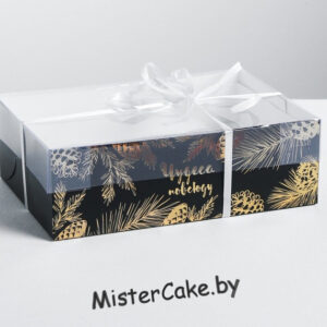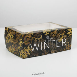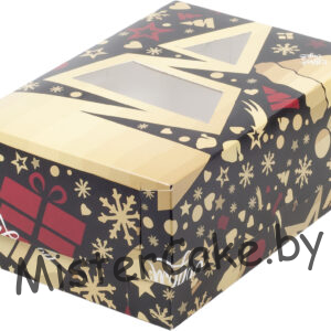 Коробка под капкейки с окошком 235*160*100 мм елка черная/золото