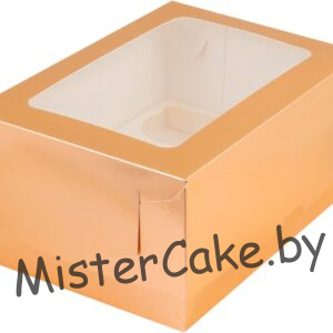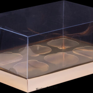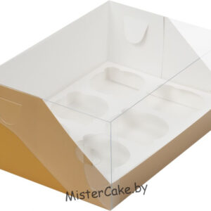 Коробочка на 6 капкейков золото с пластиковой крышкой