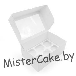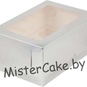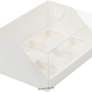 Коробочка на 6 капкейков белая с прозрачной крышкой