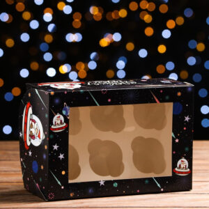 Упаковка на 6 капкейков с окном «Космический Дед Мороз», 25 х 17 х 10 см