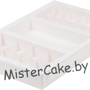 Коробка с пластиковой крышкой для конфет 200*200*30мм(8+8)+для шоколад.плитки 160*80мм(белая)
