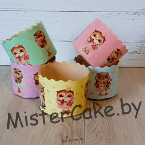 Форма бумажная для кекса, маффинов и кулича «СОВУШКИ» 90 х 90